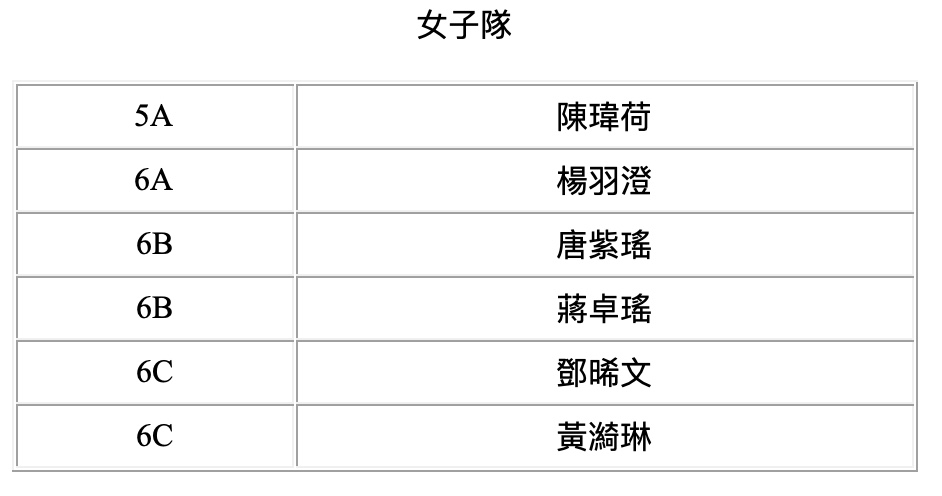 成績︰(女子組)亞軍