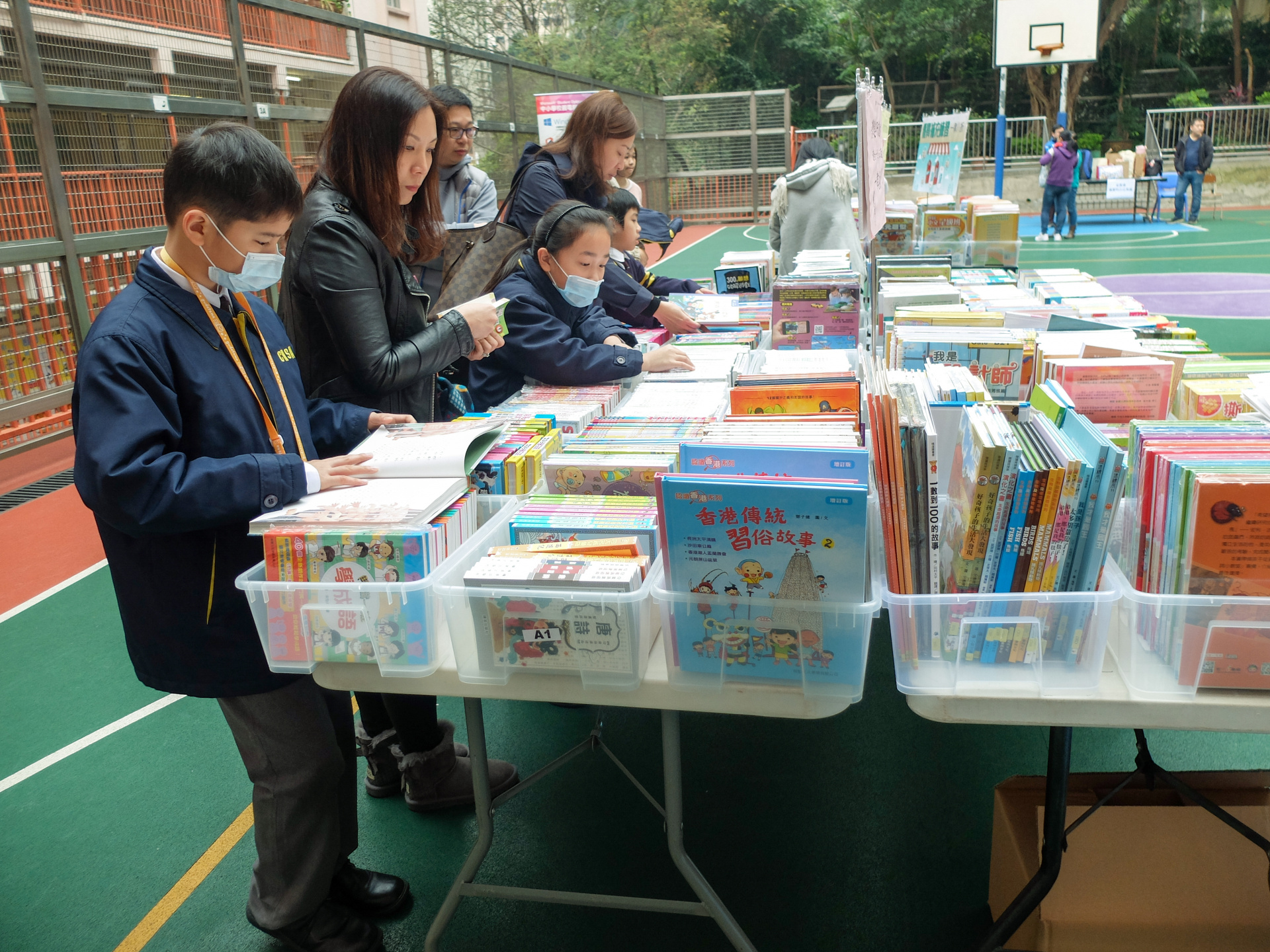 一年一度的家長日,在提早放農曆新年假的一個星期六舉行,雖然流感肆虐,亦無減家長會關心子女之心,到校了解子女學習情況,購買圖書。